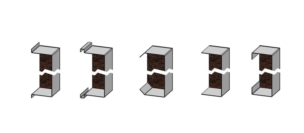 The profile of Metacut backpans is dependent upon the sequence of building component installation, how the glass is installed, whether new or retrofit work, and other variables. Metacut can advise construction professionals on design. Custom Profiles: Other back pan profiles or shapes can be fabricated. Contact Metacut for requirements.